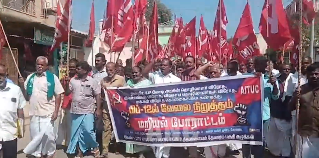 தேனி மாவட்டம் உத்தமபாளையம் அருகே உள்ள கோம்பை பேரூராட்சியில் கனரா வங்கியின் முன்பாக கம்யூனிஸ்ட் மற்றும் தோழமை கட்சி நிர்வாகிகள் ஏராளமானோர் கலந்துகொண்டு பல்வேறு கோரிக்கைகளை வலியுறுத்தி ஆர்ப்பாட்டத்தில் ஈடுப்பட்டனர்.இந்த போராட்டத்தில் AITUC மாவட்ட தலைவர் வீ.பாண்டி உட்பட பொதுமக்கள் ஏராளமானோர் பங்கேற்றன